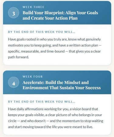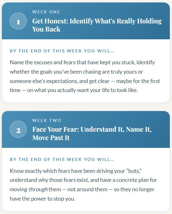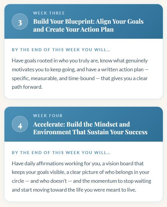 A 4-week guided program designed to help you get clarity, remove distractions, change the beliefs holding you back, and finally begin moving toward the life you actually want.